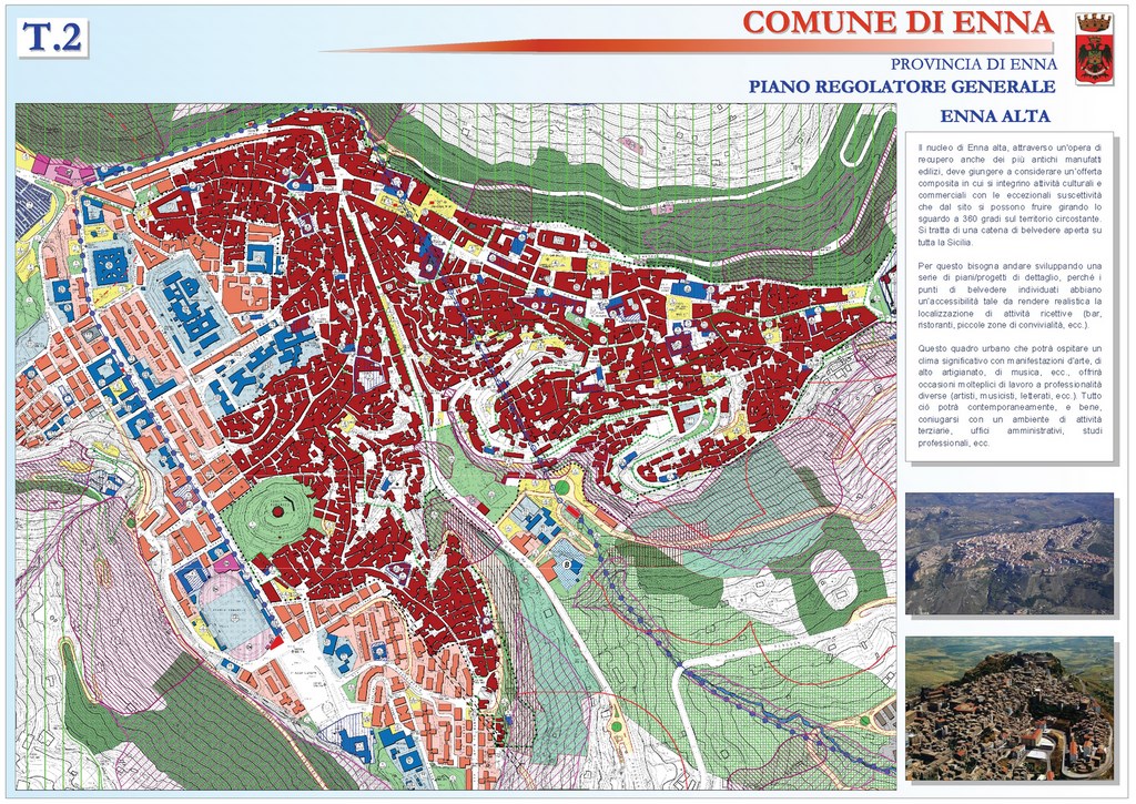 Con il Piano si persegue una maggiore specificità di ognuno dei tre nuclei mantenendo a Enna Alta funzioni amministrative, residenziali, commerciali di pezzatura tradizionali e di alta qualità (boutique di alta moda, ristoranti, bar, botteghe artigianali inserite nei tessuti storici) anche a servizio del turismo da “città del paesaggio” e “città d’arte” che può essere ospitata a Enna alta.